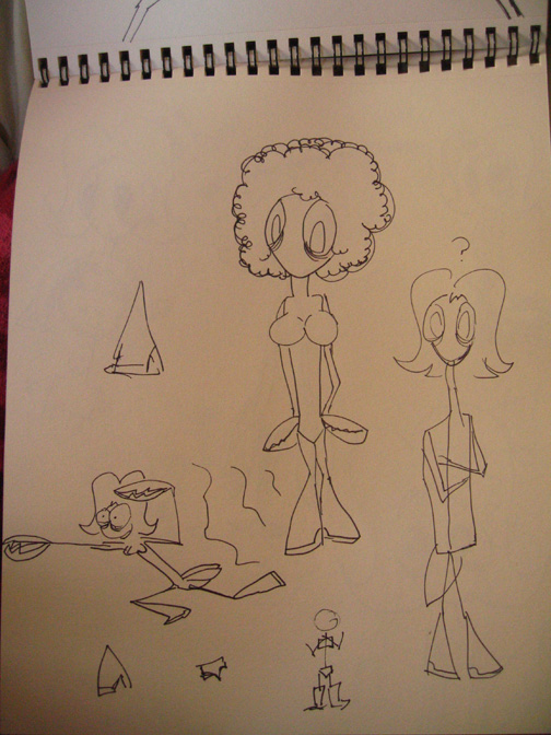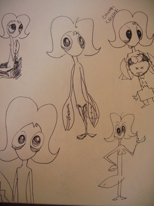 As I talk with Sherrie Sinclair, my character design advisor, we decide to add more differences between the 3 mantis. She says Coco should have longer eyelashes. She also says their boot design should be different. I thought they could use wide super-hero-like leg warmers. Coco of course having heels, Charona’s being more techy, while Brenny’s boots are more punk-rock. Also, their choice in lipstick should reflect who they are.