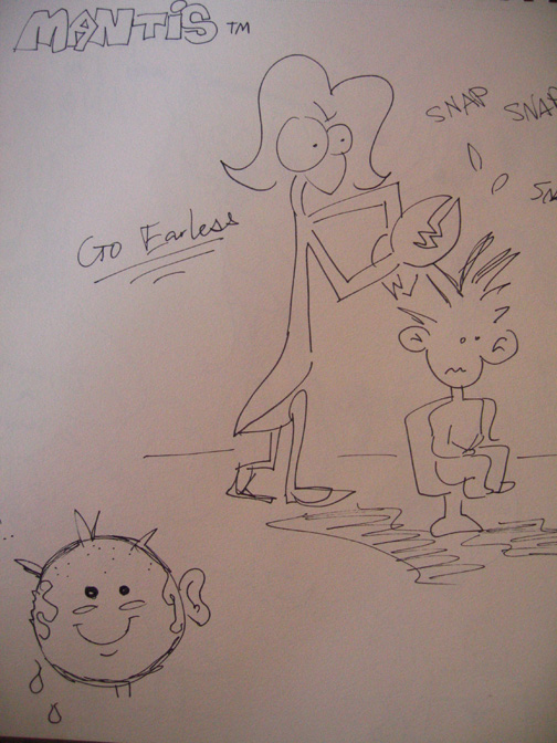 Attached are some sketches I created of the mantis that place them in possible situations. I mainly explore the possibility of different eyes and different tails.
