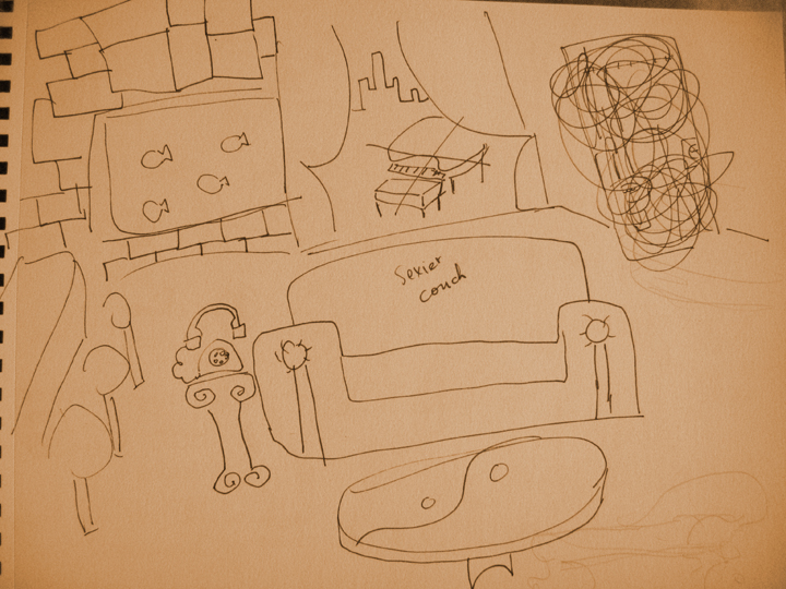 I wish to make the Mantis House a mix of Shag’s 60s bachelor pads, and outrageous kitsch objects. The campier I can get, the better. I want beauty and outrageousness working in perfect harmony. I’m using mixed media in these designs: Some objects are meant to be displayed as vector graphics, while others are meant to be displayed as photographs.