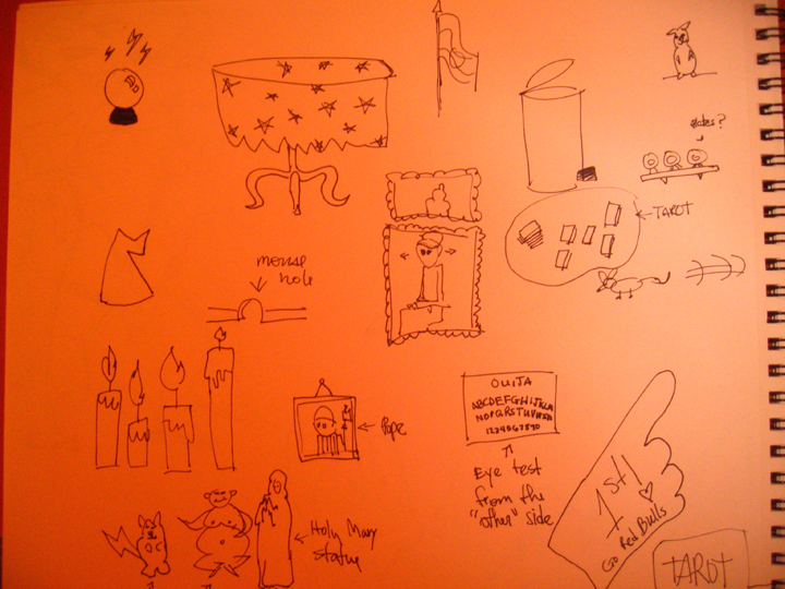 This third one is an exploration of things to be found at Madam Rosa’s Tarot Institute. From all things pagan, to popular objects. My favorite object is The Ouija Board Eye Exam… it starts out readable, eventually the fine print gets ridiculously absurd. C’mon, who wouldn’t want to be tested by an out-of-this-world consultant.