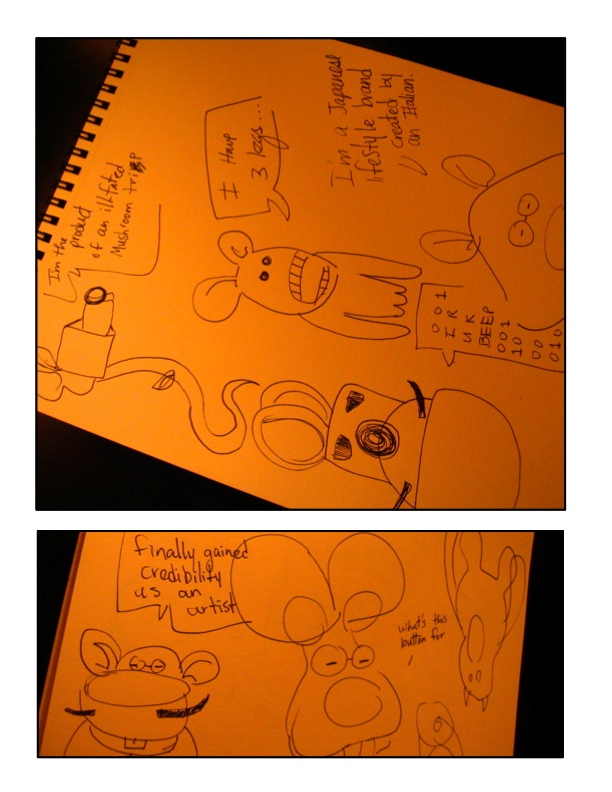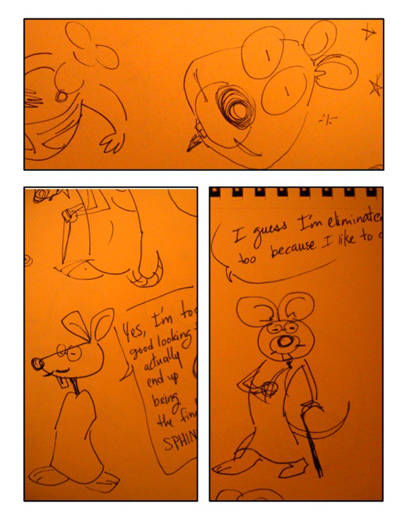 The last one, I was just doing a free-style exploration on things that don’t really make sense. I got tired of drawing rats and mutated animals with 3 legs came to be. Personally, this exploration I find to be more hillarious, but really… what am I going to do with a rat’s head on the body of a sea horse snake.