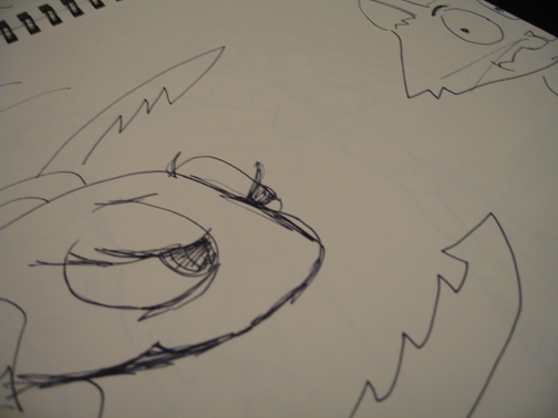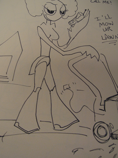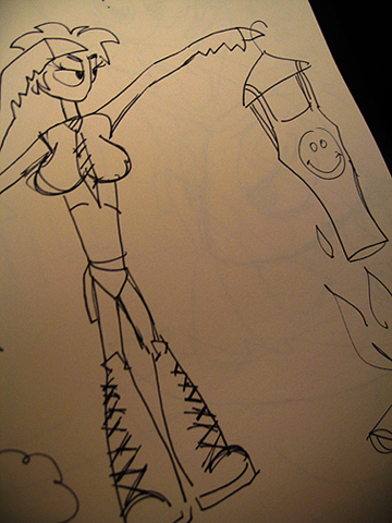 Brennny is sitting in front of the computer. She goes through all these ridiculous webcam replies. I want them to be a montage of ridiculousness; everything from famous characters, to crappy cartoons, to real people. I want one of Buffy The Vampire Slayer saying, “I think I should be the one because, lets just say I’m not a stranger to the super-hero business.” Then there’s an Ursula shaking her tentacles.