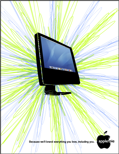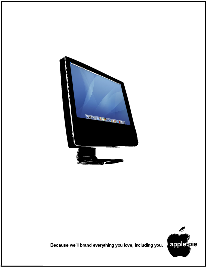 Well, this is it. I’m continuing playing with the alteration of corporate identities. In this case, I gave full attention to Apple, better known as the Apple-Pie, quite a popular spin-off in this island of ours. The same way iPod breeds new life to the years-old rotoscoping technique, i’m hoping to add a scrappy quality to the very well-known white ads of apple computers.